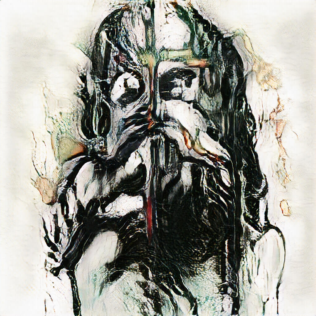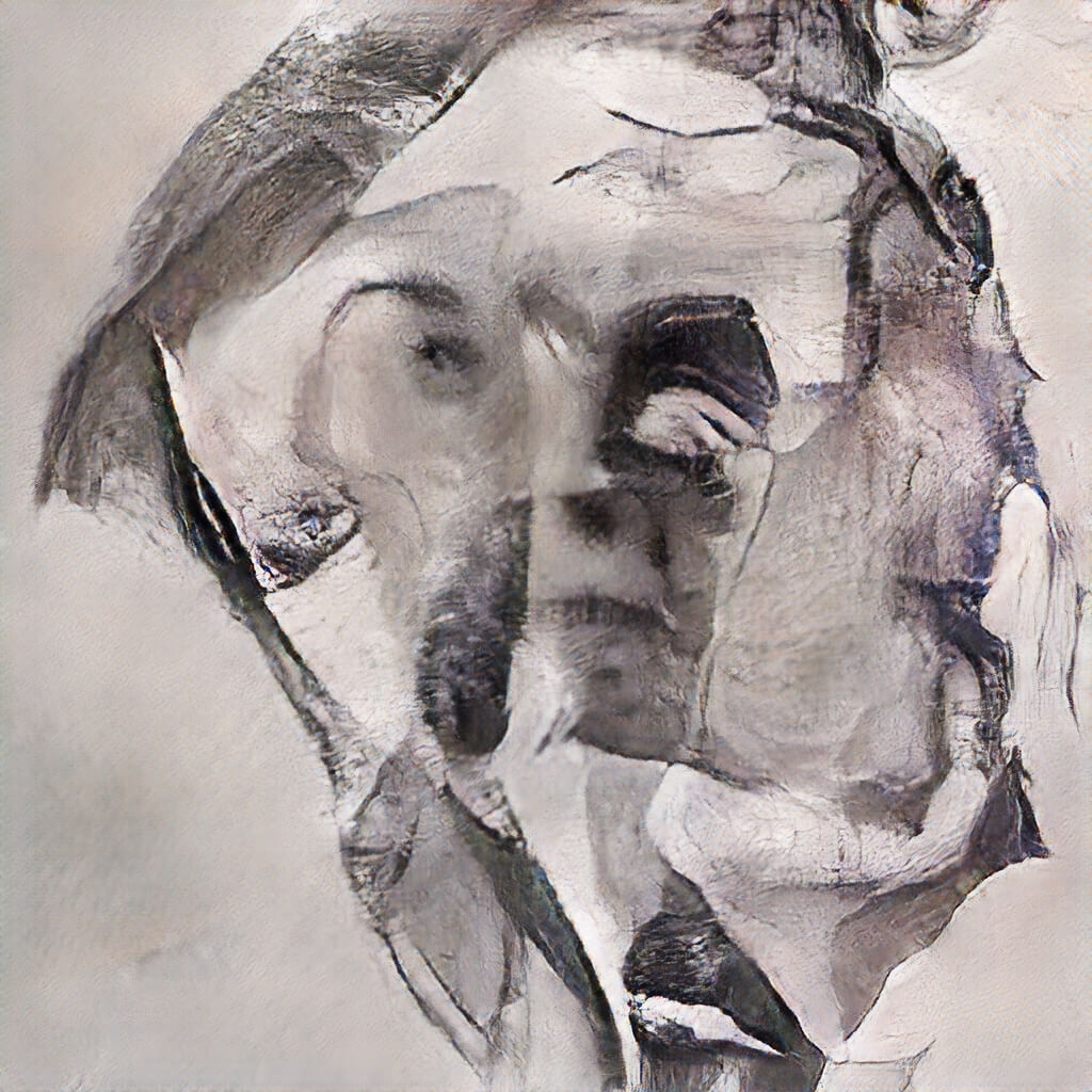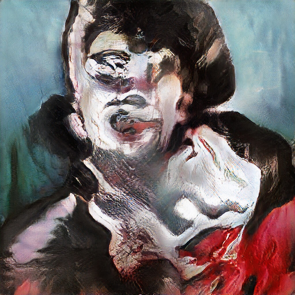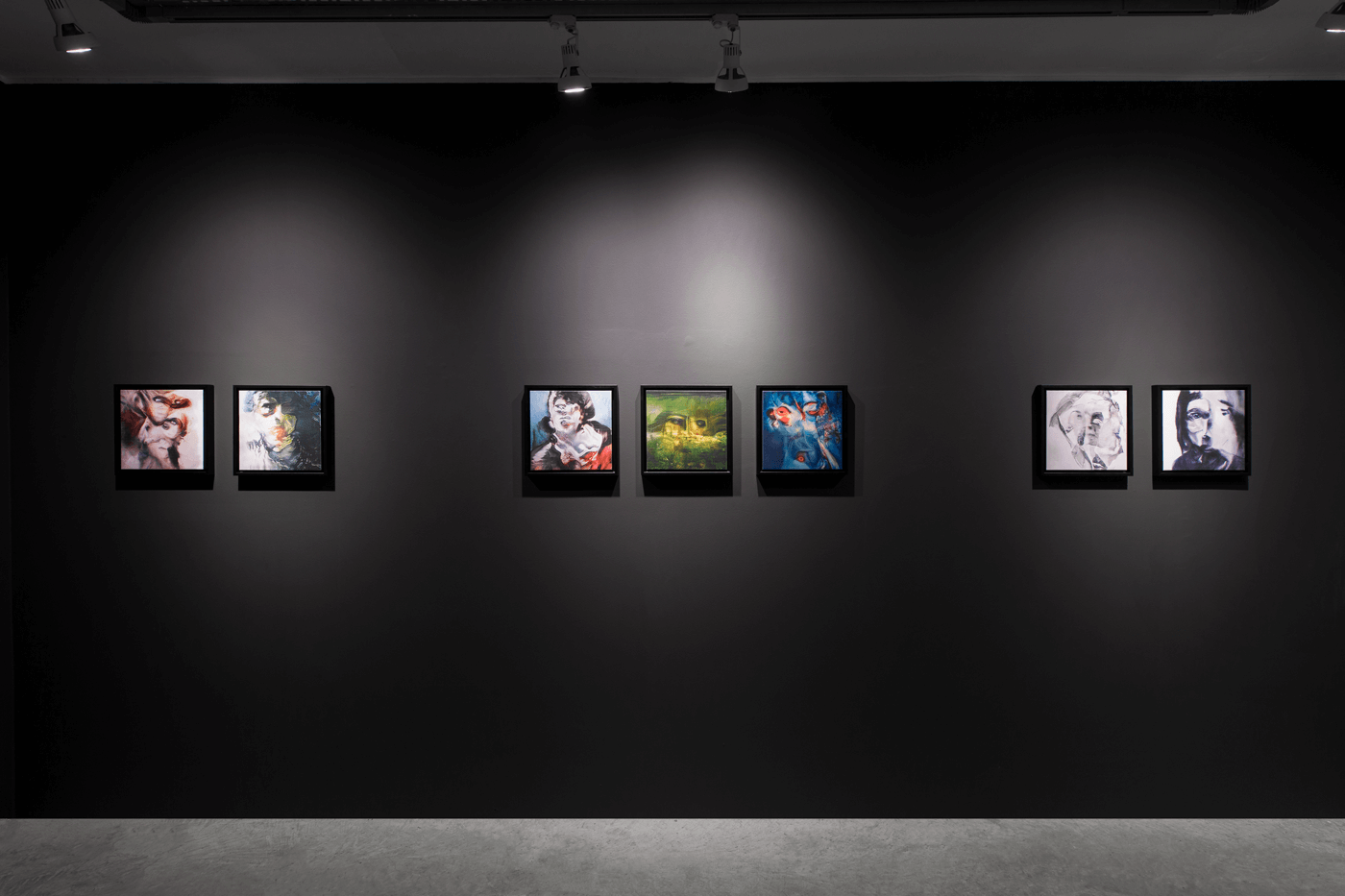A selection of face-like outputs in different artificial intelligence models as a result of training experiments with the machine learning methods (GANs), using a dataset created with images of paintings, mostly made with oil paint. An interpolation loop video was made from the images generated and some of these images were digitally printed on 32cm x 32cm canvas.