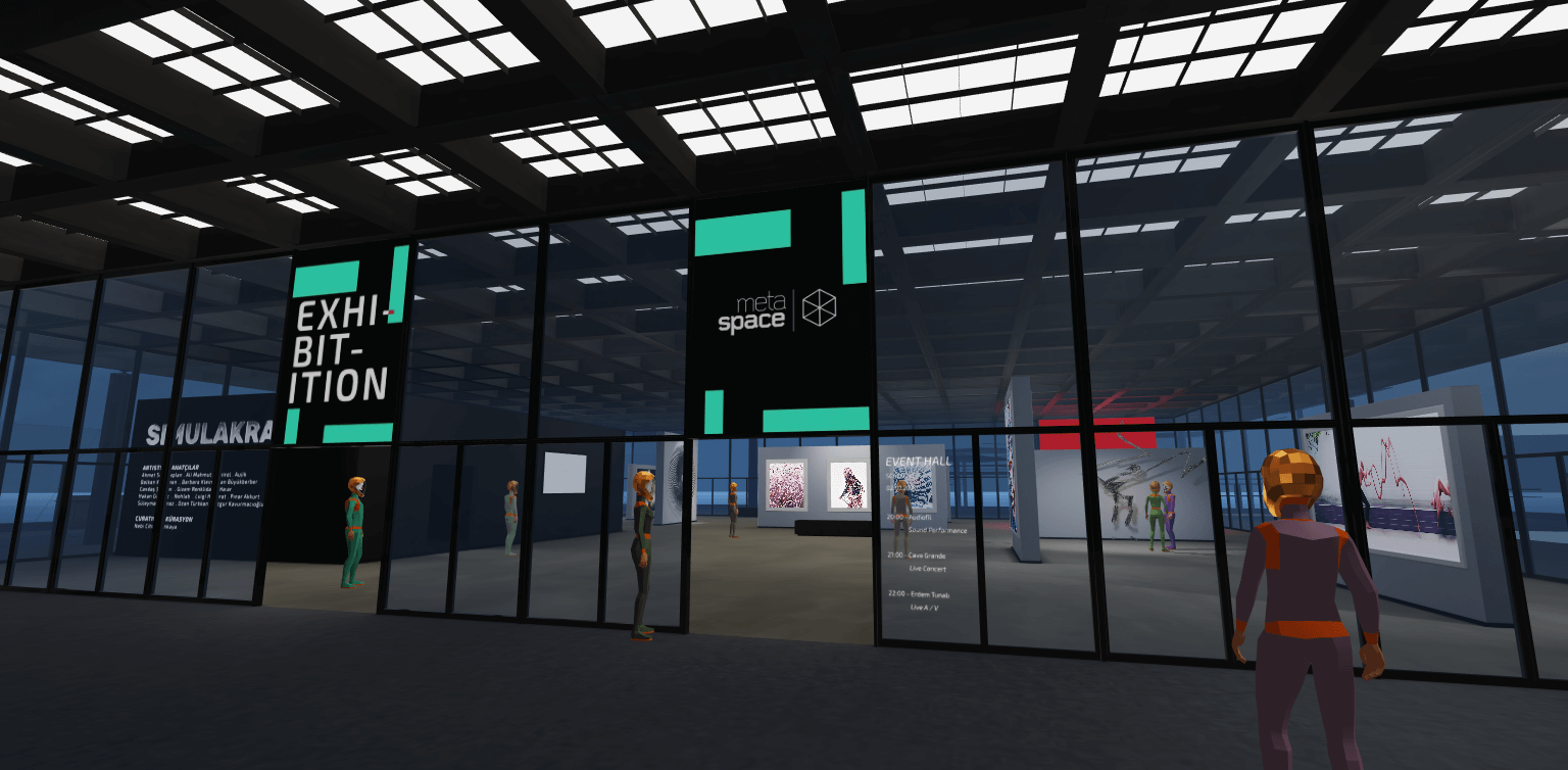 The exhibition Simulakra / Art Meeting in the Net is designed within Metaspace as a digital art event where the cyber meeting of artists who reconstruct the meta-codes of nature’s biological and cognitive evolutionary processes with speculative forms, sounds and stories in digital space will take place. The installation and live performances of 16 artists from 7 different countries can be experienced together with other visitors and artists in a digital space.